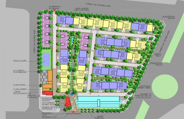 Description: The compound is intended as a safe and intimate community haven for local and expatriate residents. Consisting of a variety of residential units from small studios and one bedroom units to larger family apartments and individual town houses, in addition to leisure and recreational facilities.